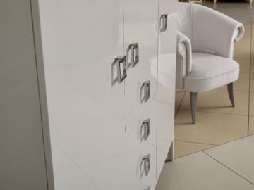 Прикроватные тумбы, комоды, шкафы выполнены в едином стиле и прекрасно дополняет интерьер, создавая неповторимый антураж камерности и стиля.