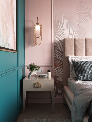 Декоративные опоры можно покрасить в цвет кровати или сделать контрастный акцент интерьера